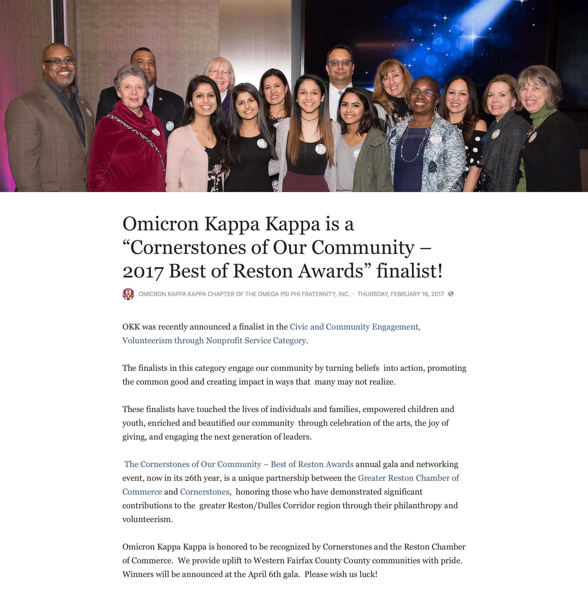 Congratulations to the Brothers of Omicron Kappa Kappa Chapter of the Omega Psi Phi Fraternity Inc. for your recognition of Service across the Western Fairfax Community.