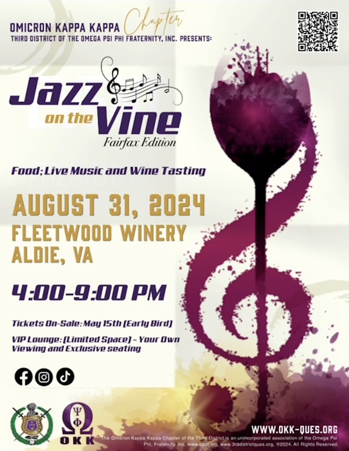 Join OKK Foundation and Fairfax County Omega Psi Phi Chapter at their Inaugural “Jazz on the Vine” Fairfax edition August 31,2024