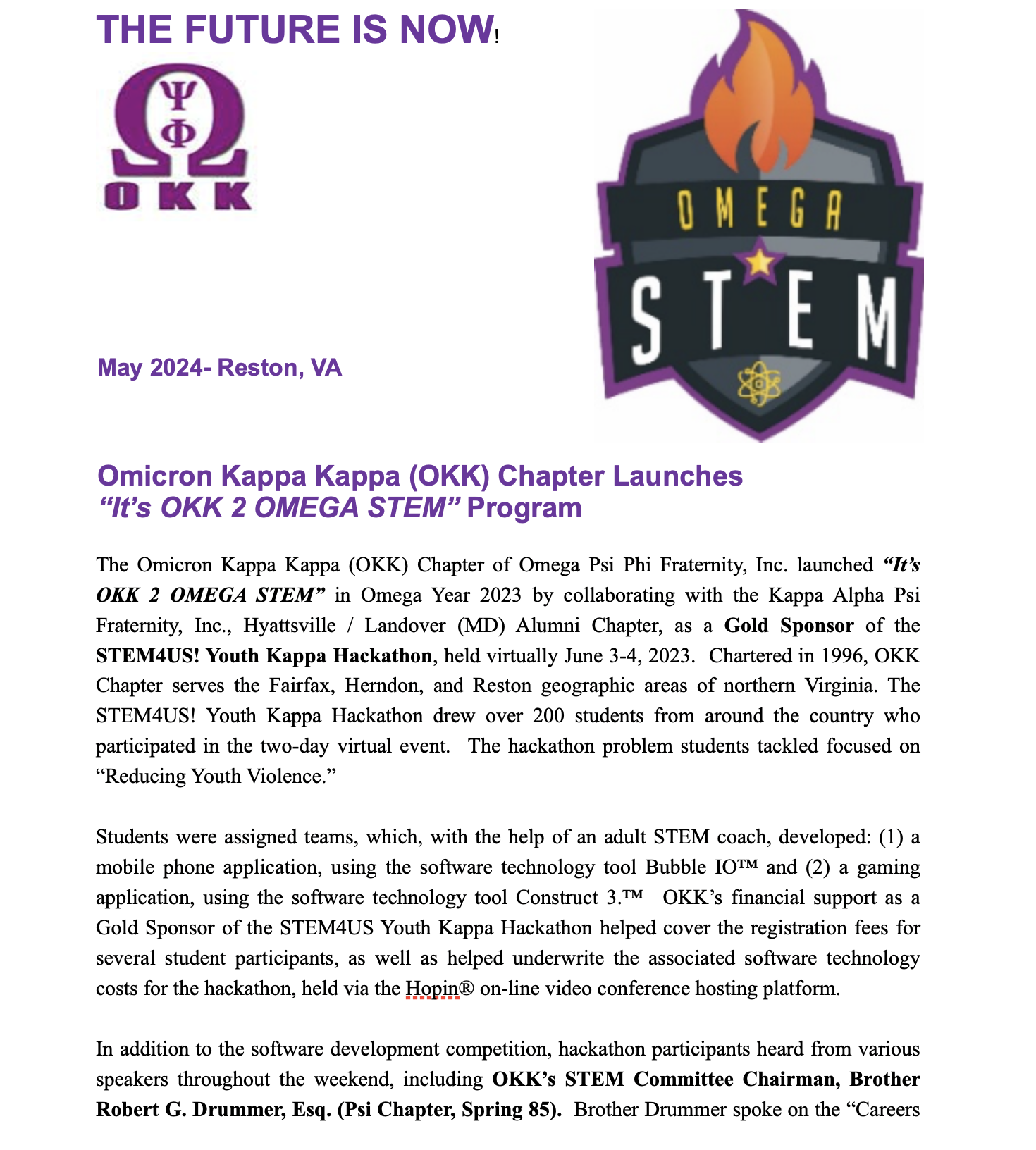 The OKK Chapter of The Omega Psi Phi Fraternity Inc. is honored to engage in STEM initiatives that are designed to get students excited about science, technology, engineering, and mathematics (STEM).